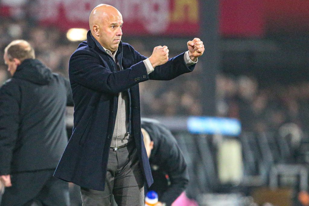 “En met voetbal, hè,” haakt van Basten in. “Het is vanuit achteruit, goed de bal rond laten gaan. Als je ziet hoe snel het positiespel gaat in kleine ruimtes, dat vind ik zeer indrukwekkend. Dat is de handtekening van meneer Slot. Ik moet zeggen dat ik hem een geweldige trainer vind en hij kan het ook geweldig uitleggen en heeft verstand van de materie.”