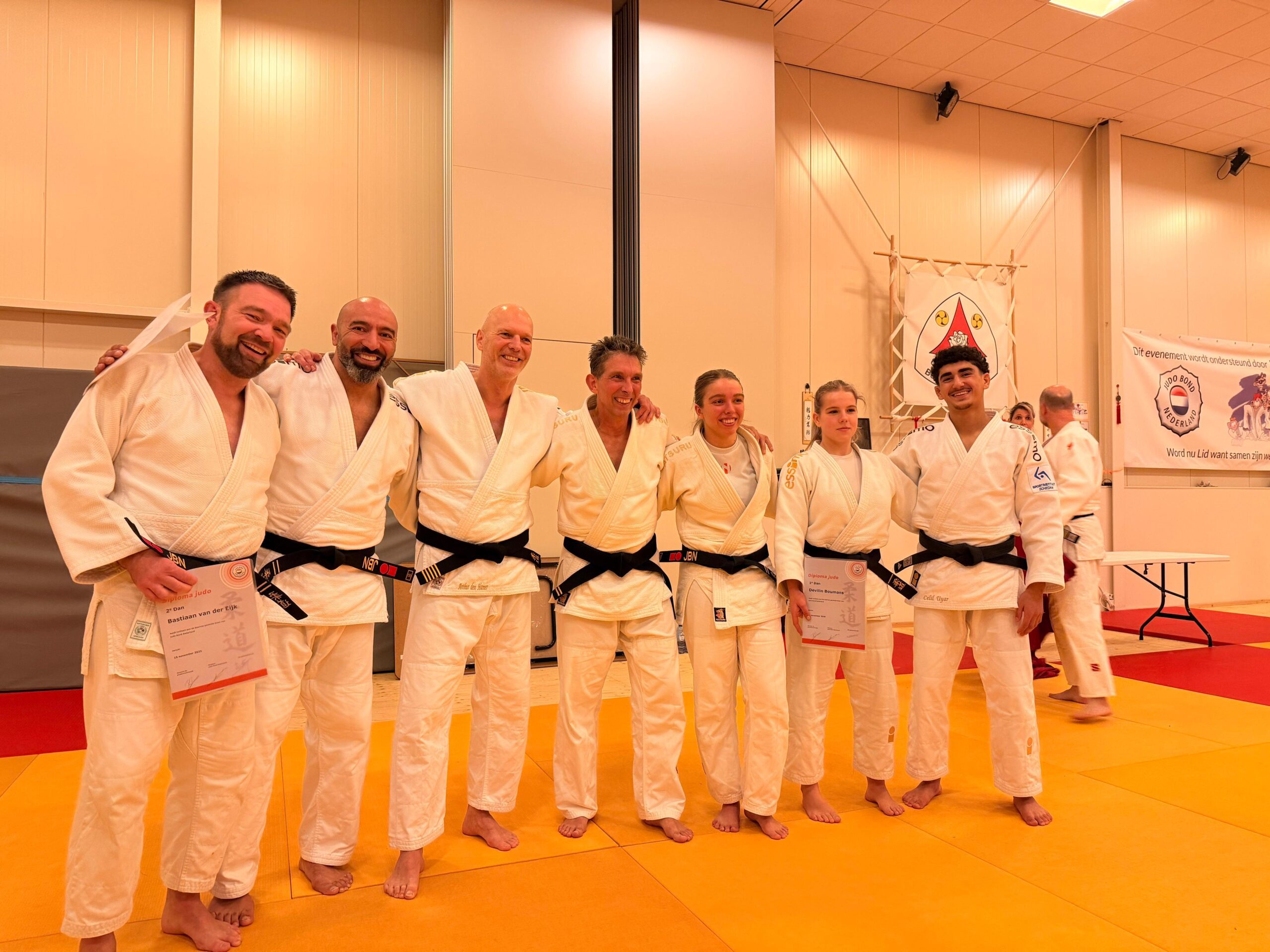 Luca Quartel, Bastiaan van der Eijk en Hüseyin Tekin deden het ook uitstekend en behaalden de 2e Dan judo. Alle drie deden een volledig technisch examen met twee kata’s en de onderdelen nage-waza (werptechnieken) en ne-waza (grondtechnieken).