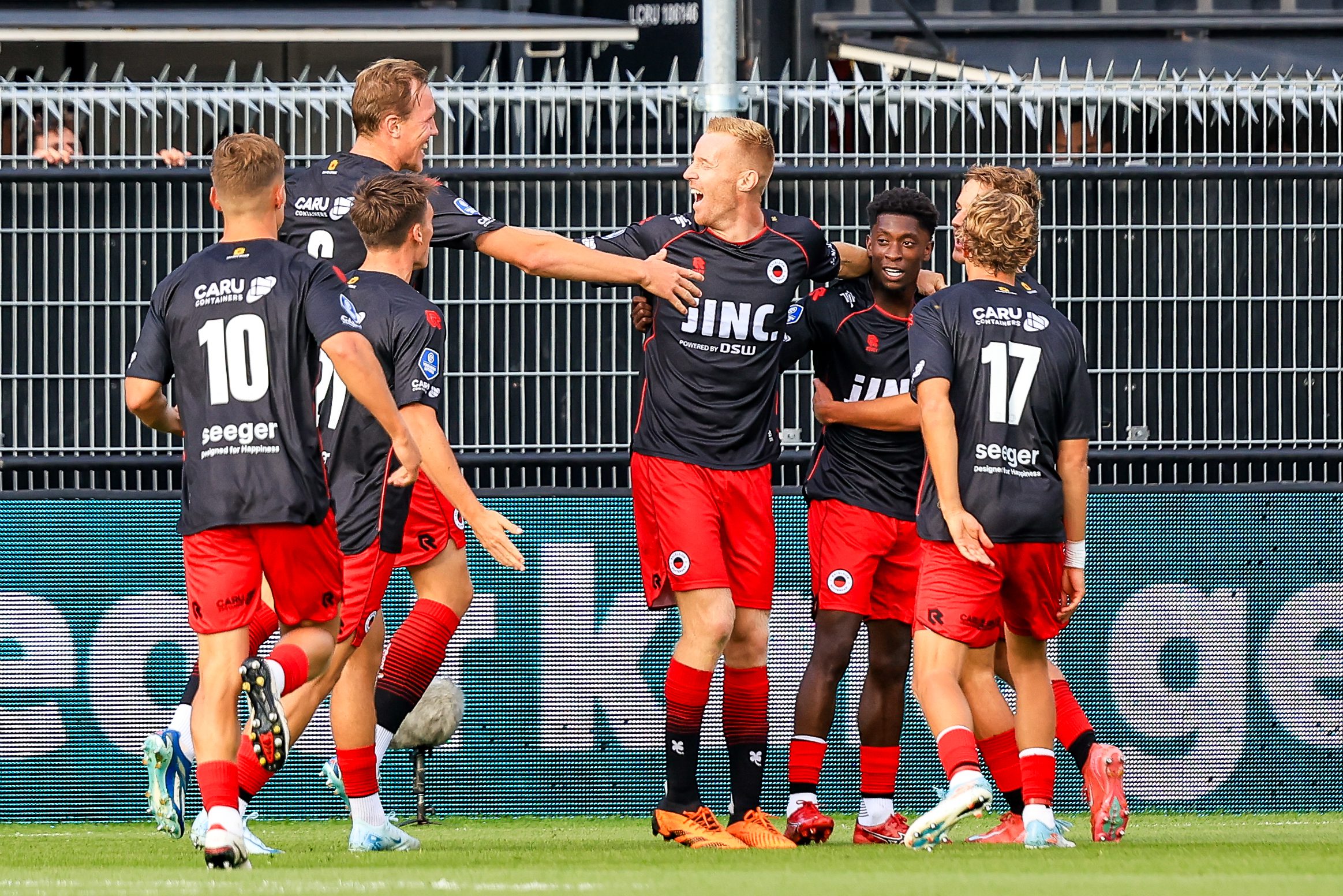 De gastheer opende sterk en zag nieuweling Stan Henderikx, deze zomer overgekomen van FC Den Bosch, het eerste schot lossen op doelman Lars Unnerstall. Enkele minuten later maakte hij een overtreding op de doorgebroken Daan Rots. De VAR greep in en Henderikx kon er met rood af.