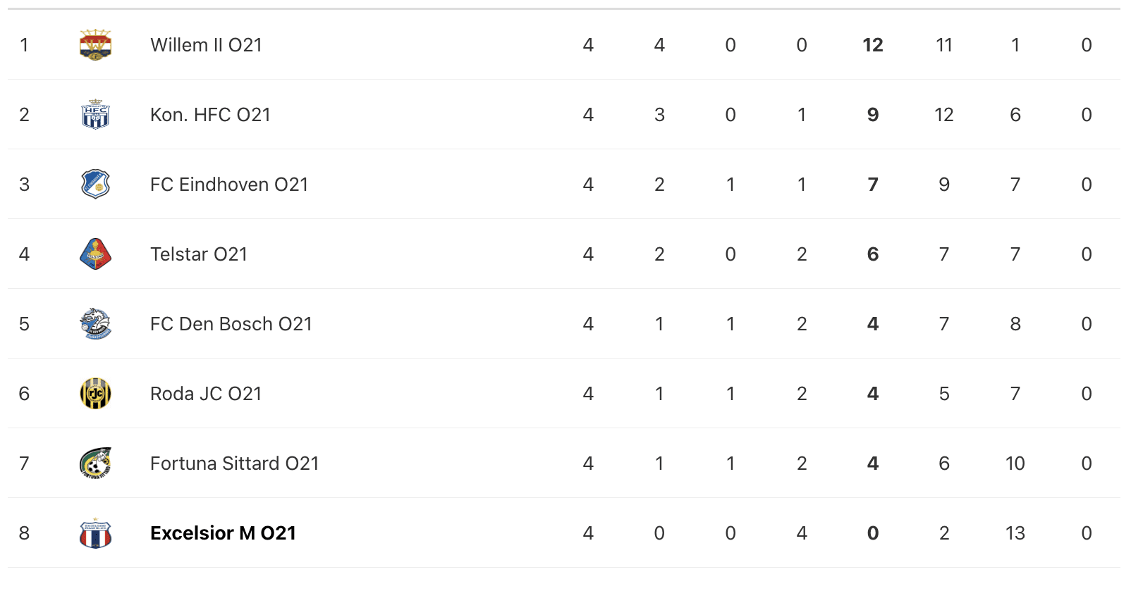 Helaas een nederlaag voor Excelsior Maassluis O21. De tricolores ,die uitkomen in de derde divisie landelijk, kwamen tegen Koninklijke HFC niet verder dan een 3-0 nederlaag. Daarmee onderstrepen ze een stroeve start van het seizoen. Komende zaterdag spelen de youngsters tegen Telstar een ploeg uit de middenmoot om enige aansluiting te vinden.