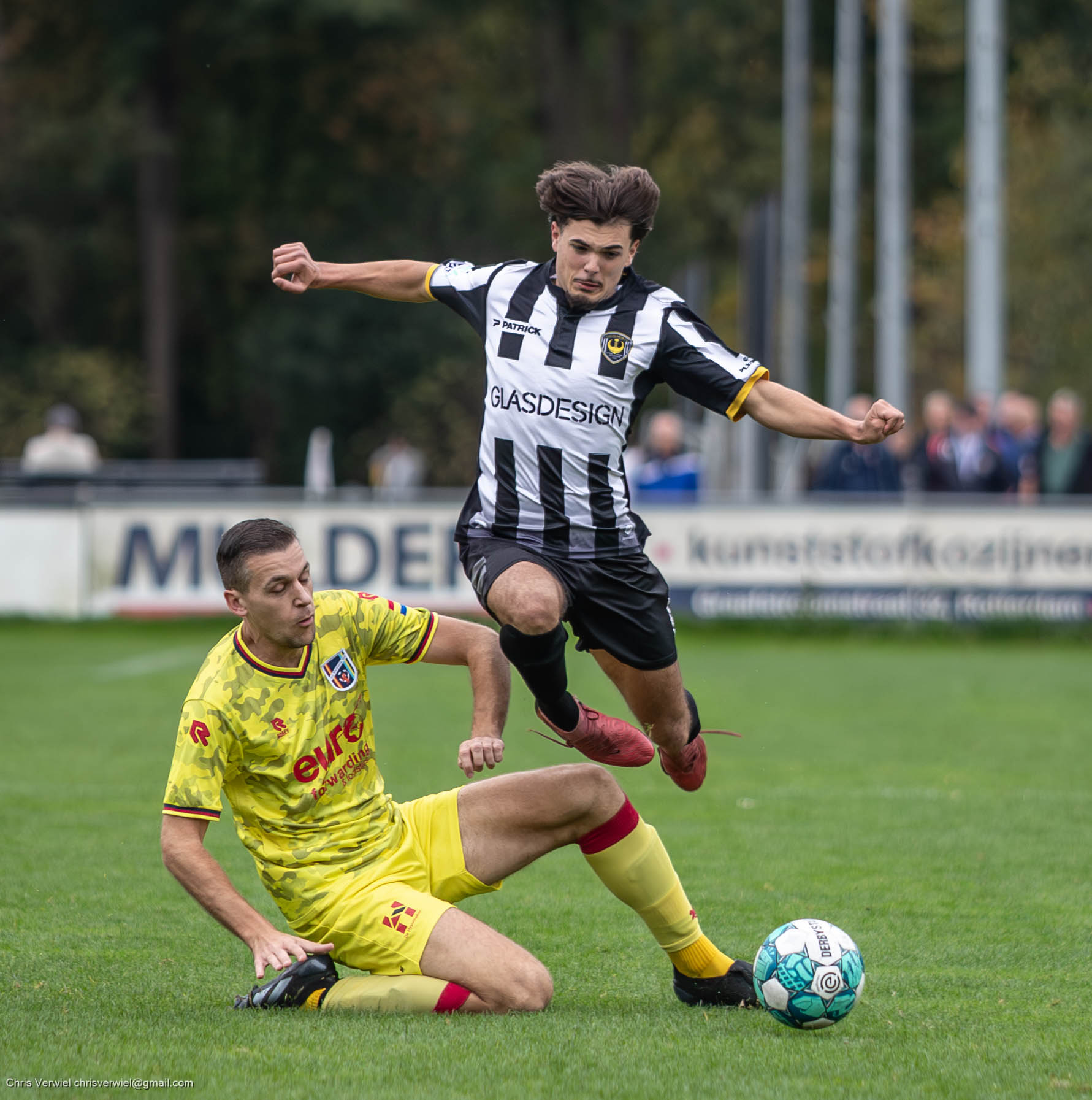 De Waterweg-derby tussen Excelsior’20 en Victoria’04 begon met een geweldige vuurwerkshow voor de bezoekers maar eindigde in een 1-0 overwinning voor de thuisploeg. Jason Kort was in het eerste bedrijf de gevierde man voor de Thurlede-bewoners.