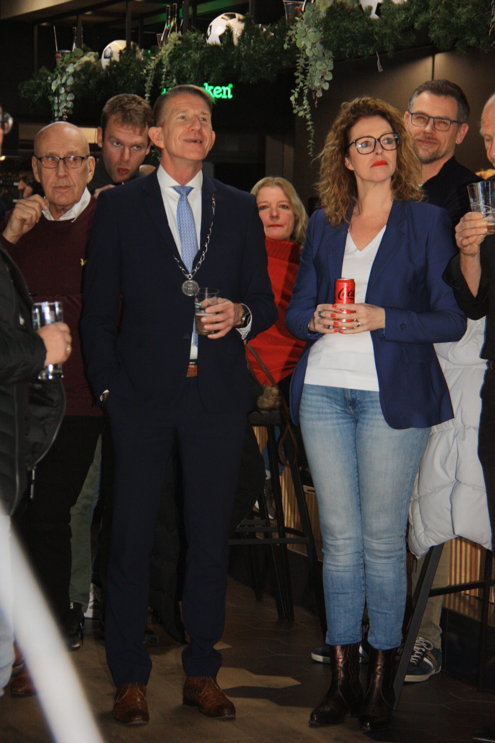 Om de feestvreugde op de receptie te verhogen heropende de Burgmeester met een flinke lel aan de koeienbel boven de bar; de sfeervolle vernieuwde kantine met een rondje voor iedereen.