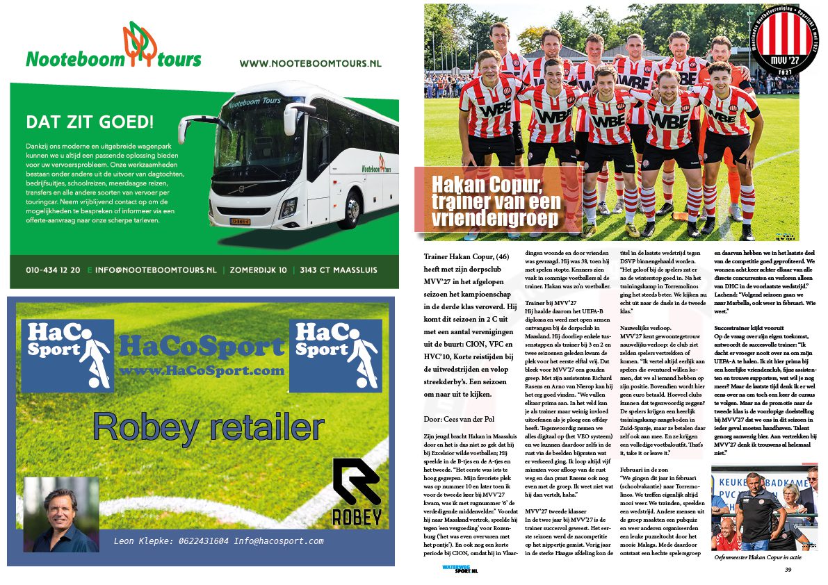 Trainer Hakan Copur, (46) heeft met zijn dorpsclub MVV’27 in het afgelopen seizoen het kampioenschap in de derde klas veroverd. Hij komt dit seizoen in 2 C uit met een aantal verenigingen uit de buurt: CION, VFC en HVC’10, Korte reistijden bij de uitwedstrijden en volop streekderby’s. Aankomende zaterdag ontmoet hij met de Maaslanders zijn oude club CION…