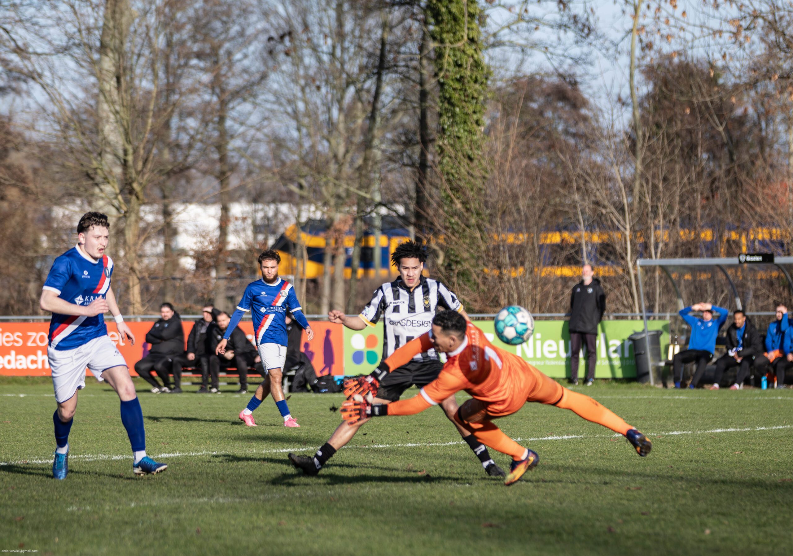 Niet vergeten mag worden dat Preston Dullaard even daarvoor een pingel gestopt zag worden door de sterke Charlois-goalie Linber van der Horst. Die 2 invallers waren Gael Bokungu en Dani Ruiz. Laatstgenoemde rondde een voorzet af van zijn mede-invaller, 4-3. ,,Het was een leuke wedstrijd,” aldus Jaco Verhoev, waarin van alles gebeurde. Ik ben zeker blij met de 3 punten.”
