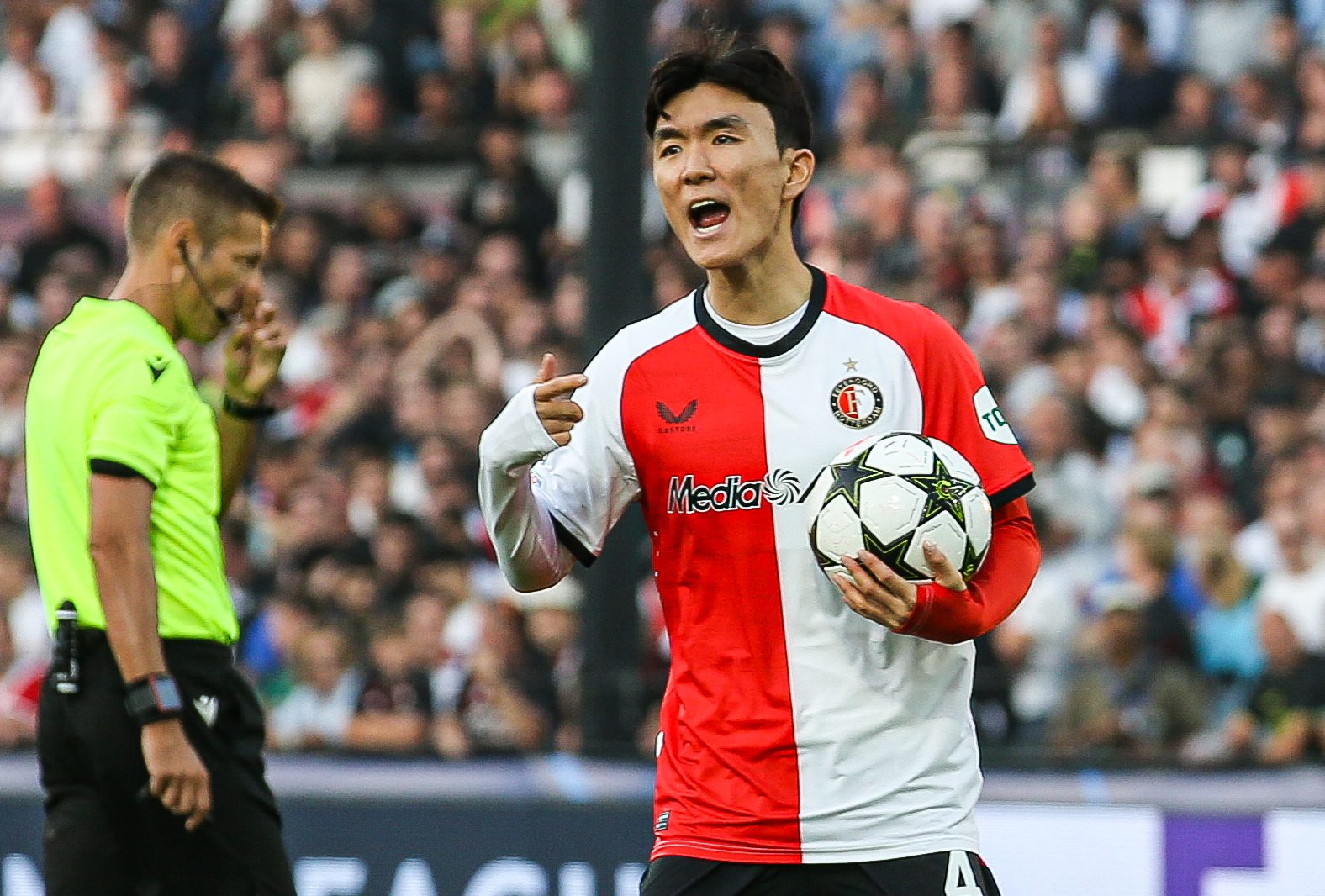 Hwang put veel vertrouwen uit de wedstrijd tegen City. “Vooral als je kijkt naar hoe we speelden als team. Om van 0-3 terug te komen tot 3-3, tegen nog steeds de beste ploeg in de wereld, is niet makkelijk en wij hebben het voor elkaar gekregen. Maar nu moeten we in De Kuip eens punten gaan pakken. Dat we thuis nog op nul staan, is onacceptabel.”
