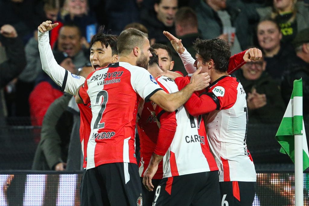“Even over Zerrouki. Het heeft er ook mee te maken hoe Feyenoord speelt. Als ze spelen zoals tegen Almere City, dan speelt hij echt als controleur. Dat is voor hem echt makkelijker dan wanneer hij met iemand naast hem speelt. Dat wijzen de statistieken ook uit. Daar heeft hij ook veel meer moeite mee, dan is hij ook meer in zijn element. Dan ziet het er ook meteen veel beter uit bij hem. Maar dat doortikken van Hancko, Zerrouki hoefde alleen maar even ja te knikken.”