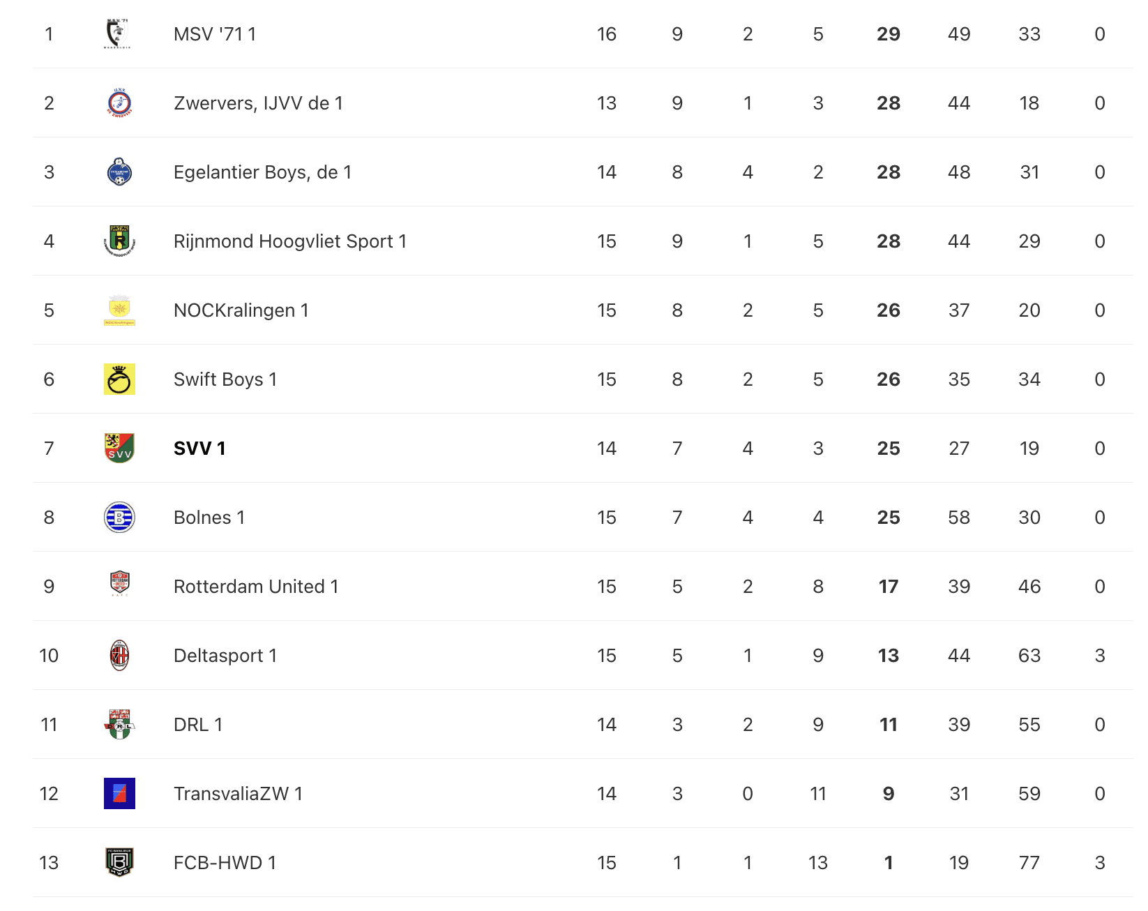 Dor de uitslag is de stand nu als volgt: