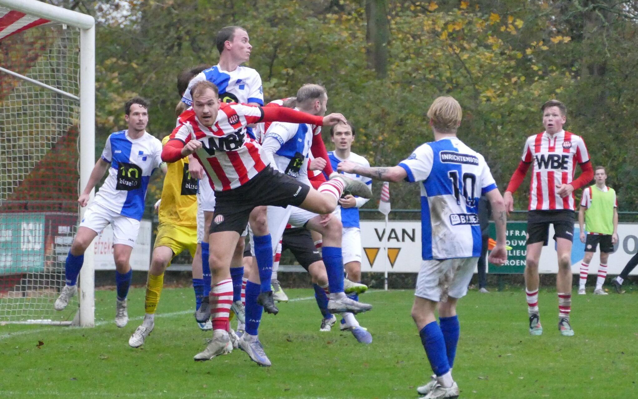 De Wippolder-keeper had zijn handen vol, want ook Rhijnsburger, Van Barneveldt en Baak bleven gevaarlijk.