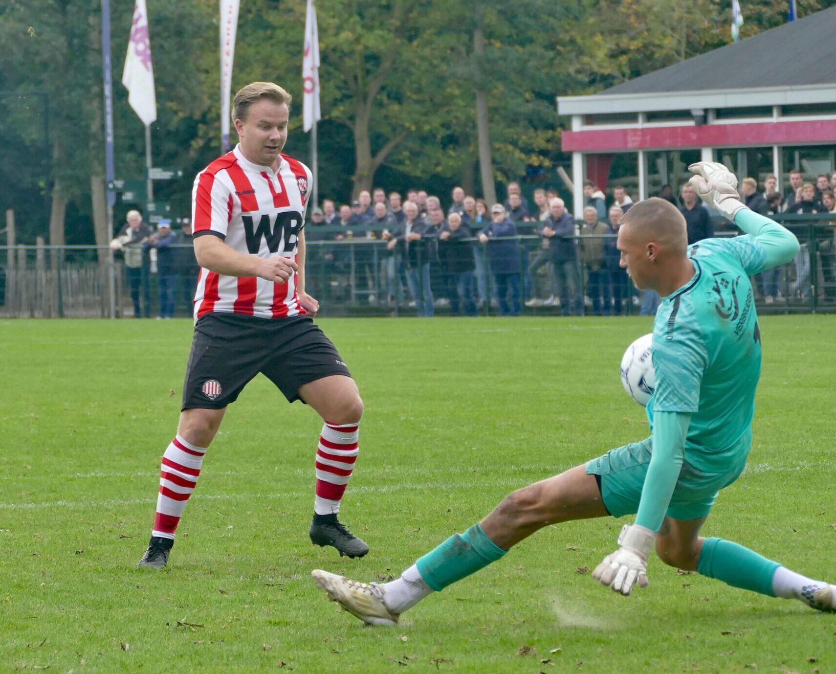 Het schaakspel zonder al te veel risico’s ging verder, totdat zeven minuten voor het rustsignaal Hagenaar Dennis Rog in de diepte werd gevonden, maar Mark van Barneveldt hield met een prima redding zijn ploeg op de been.