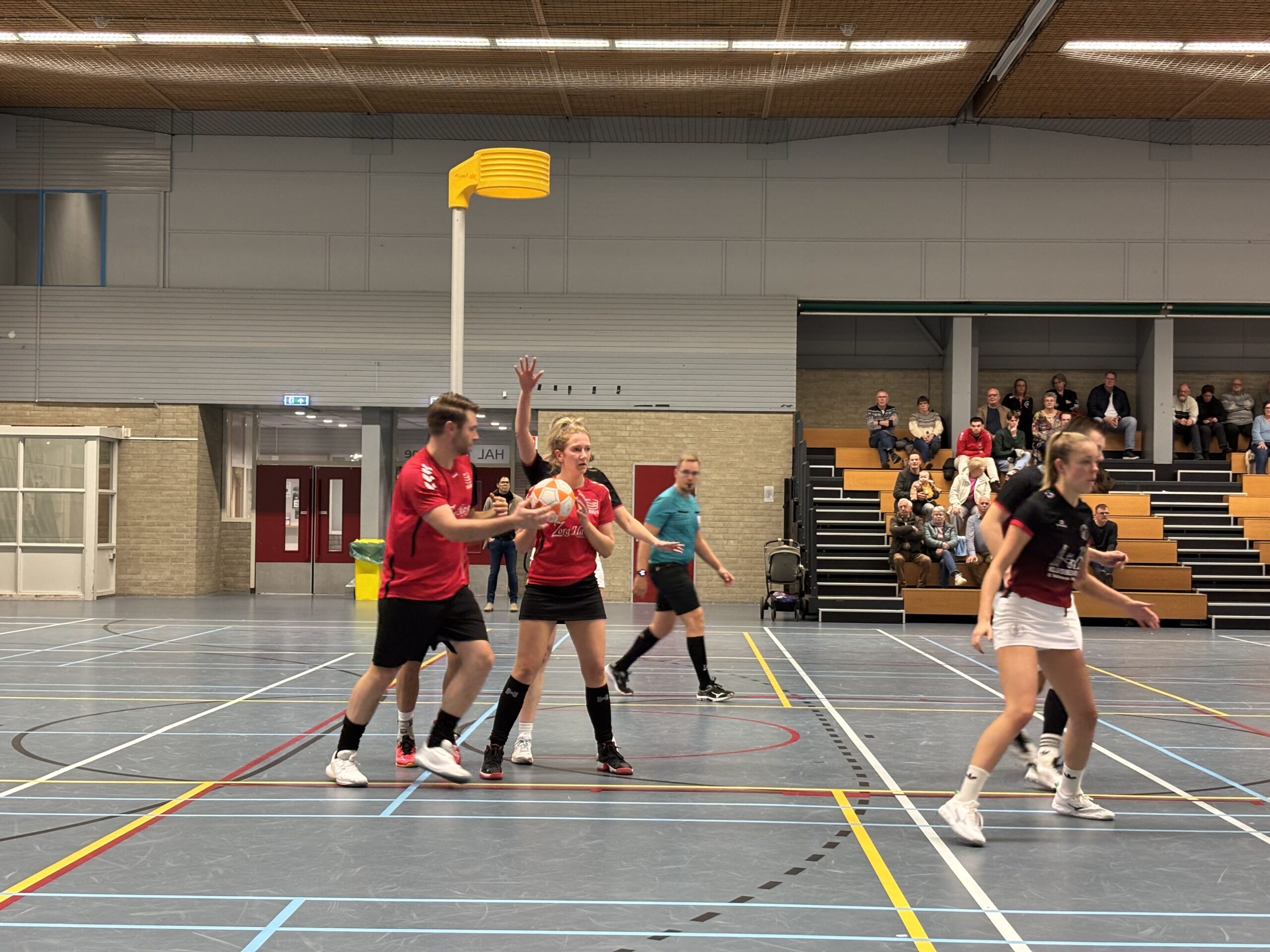 Na ongeveer een kwartier spelen begon het duel écht los te komen. Aan beide kanten vielen de doelpunten, met mooie aanvallen en scores van zowel dames als heren van Nexus. Het tempo lag hoog, het duel was open en fysiek, maar sportief. Dankzij hard werken, slimme keuzes en goed teamspel ging Nexus met een 8-7 voorsprong de rust in. Geen enorme marge voor korfbalbegrippen, maar wel eentje die volledig verdiend was.