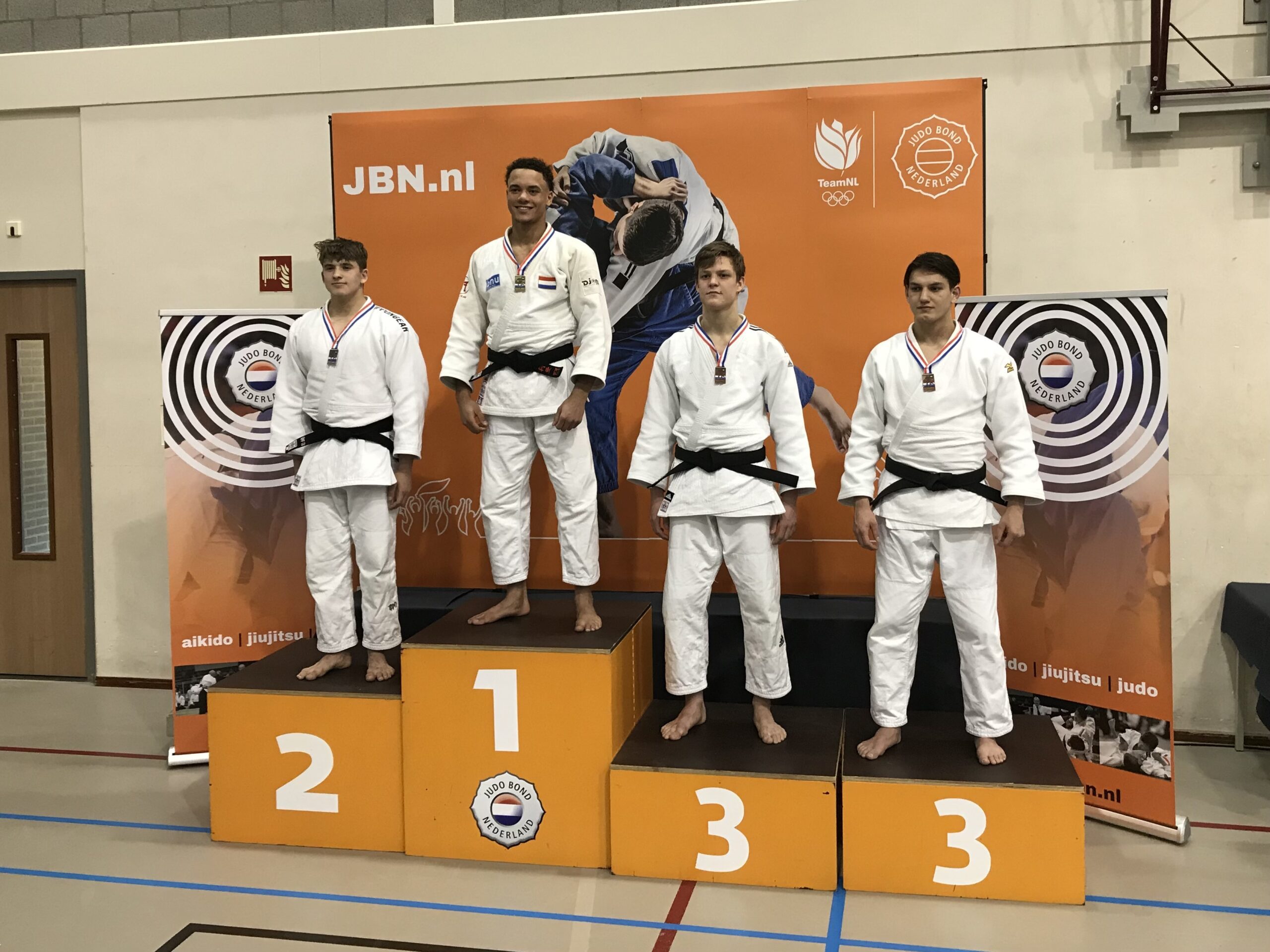 Wat restte was de strijd om het brons tegen de Limburger Rusker Schell. In een spannende, gelijk opgaande strijd was Dylan de gevaarlijkste judoka van de twee, maar stond hij zelf ook al op twee straffen (drie straffen is einde wedstrijd). Uiteindelijk wist Dylan zijn tegenstander toch nog op de zij te werpen en won zo de wedstrijd met waza-ari.