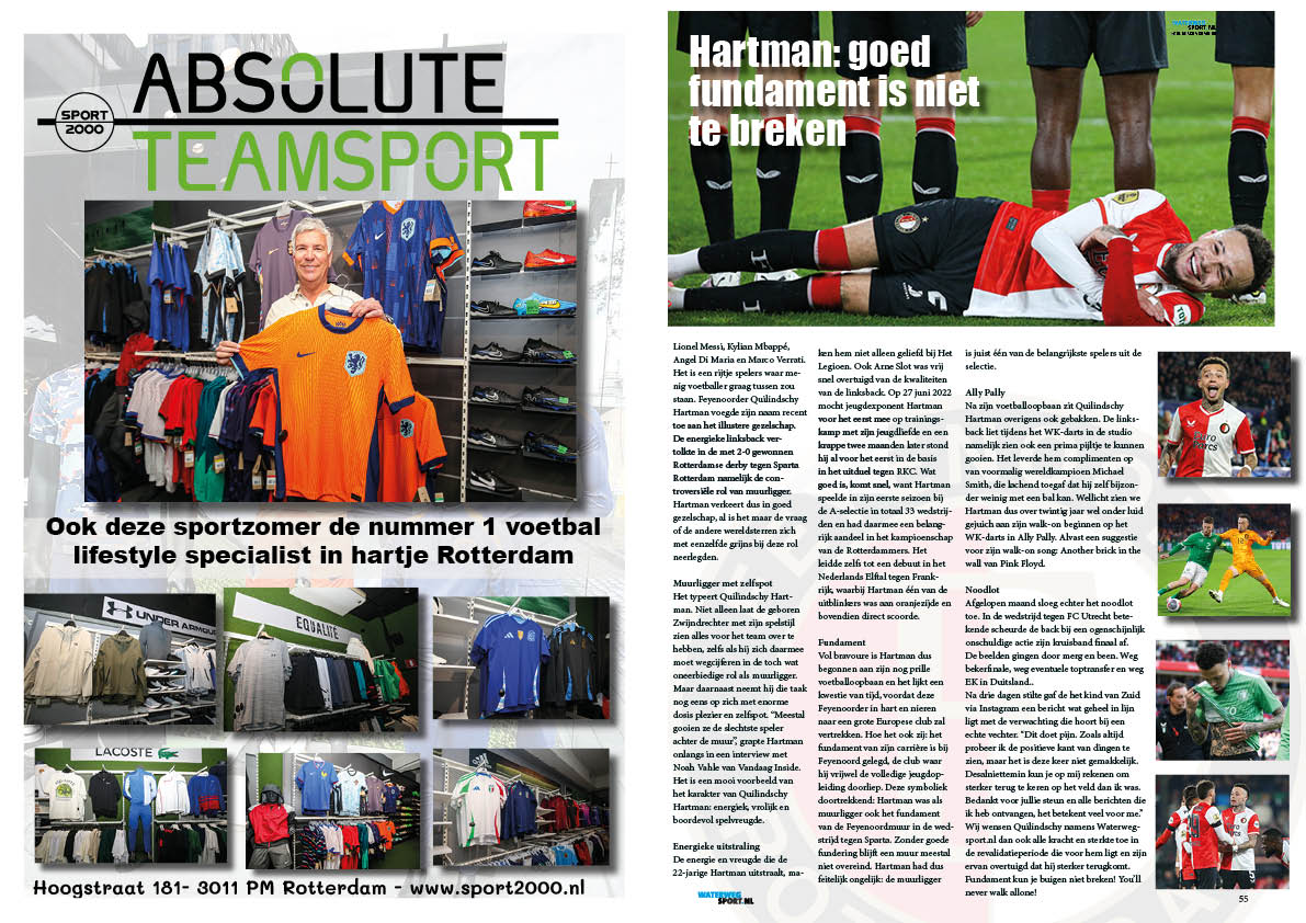 Met het starten van het EK 2024 wordt de voetballiefhebber ruim een maand lang getrakteerd op de mooiste wedstrijden op topniveau. Maar ook bij ABSOLUTE TEAMSPORT Sport 2000 in Rotterdam Centrum kan de voetballiefhebber zijn hart ophalen. De winkel van de bevlogen Vlaardingse ondernemer Rob van ’t Oor is inmiddels helemaal omgetoverd tot een EK-walhalla waar de crème de la crème op het gebied van voetbalfashion te vinden is. “We hebben alle voetbaltenues, trainingspakken en andere lifestylekleding van de landen die aangesloten zijn bij de grote merken,” laat Van ’t Oor trots weten.