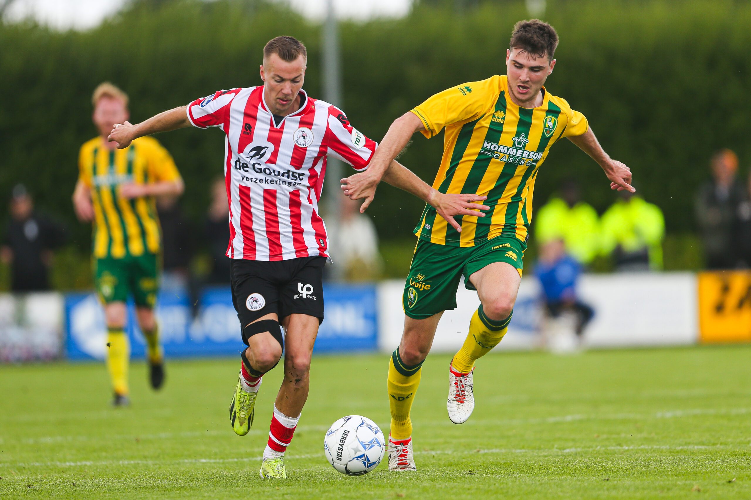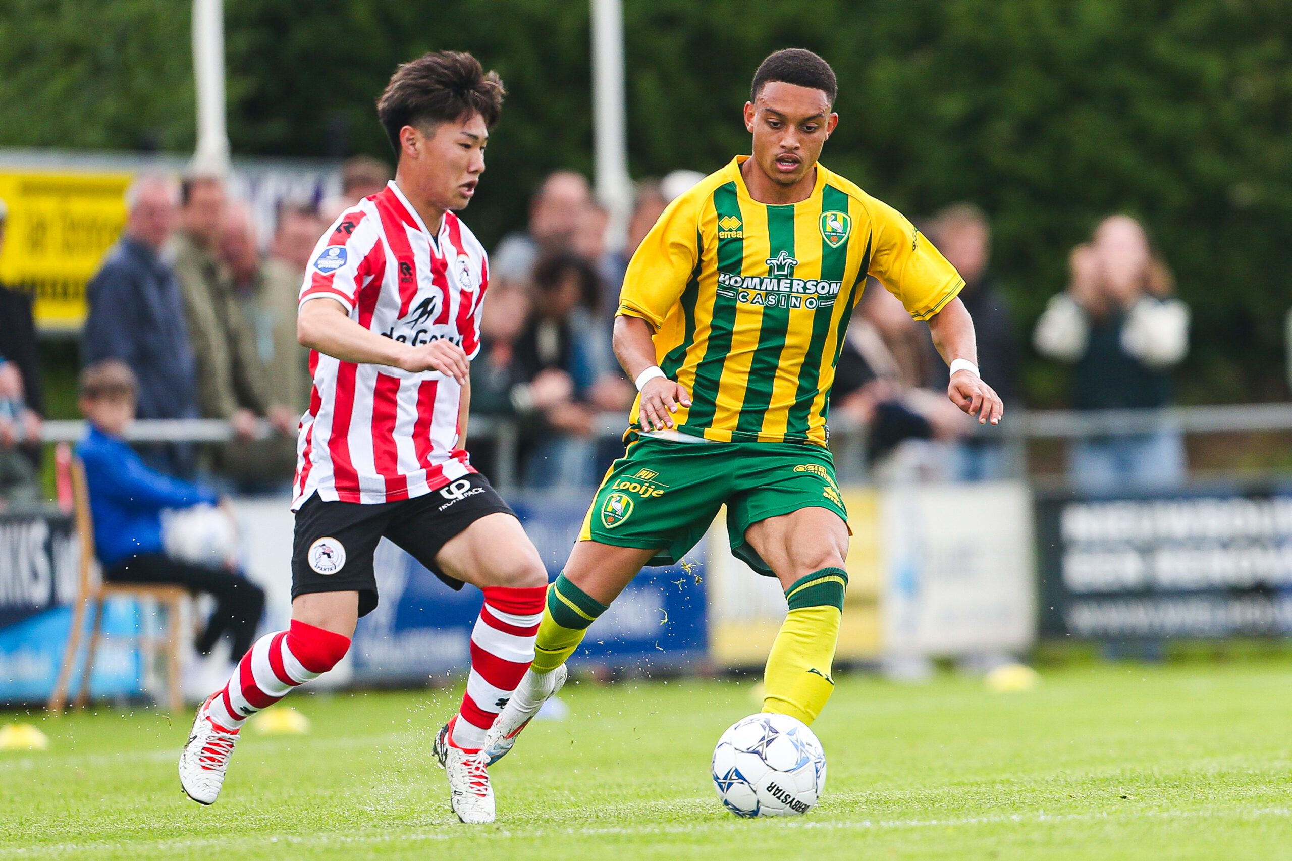 Voor Sparta betekende de oefenwedstrijd van vandaag de afsluiting van de derde week van de voorbereiding. Nadat er eerder al gewonnen werd van de amateurs van Excelsior’20 (0-6), VV Nieuwenhoorn (0-8) en Excelsior Maassluis (0-7), stond er vanmiddag de eerste test tegen een profclub op het programma. In de wedstrijd tegen ADO koos trainer Jeroen Rijsdijk veel al voor spelers die vorig seizoen ook konden rekenen op een basisplaats. Ten opzichte van de play-offs wedstrijd eind mei tegen FC Utrecht, zagen we vier wijzigingen. Met Rick Meissen en Tijs Velthuis stond er een nieuw centraal duo. Verder startte ook nieuweling Julian Baas en verving Shunsuke Mito zijn vertrokken landgenoot Koki Saito.