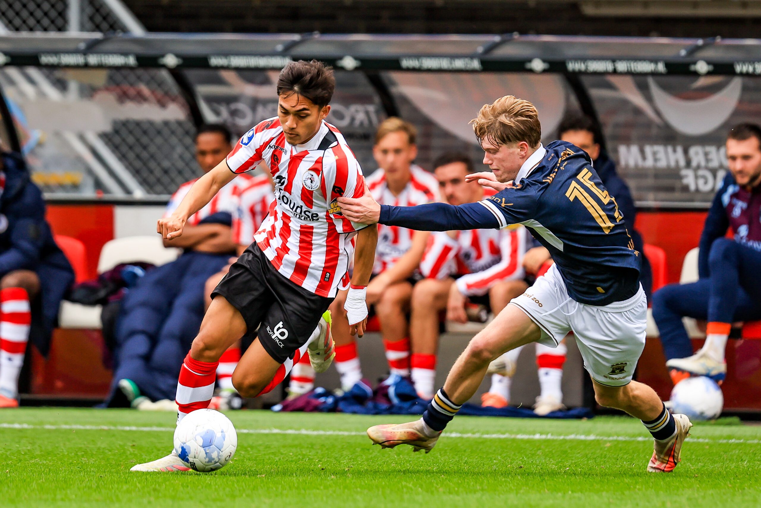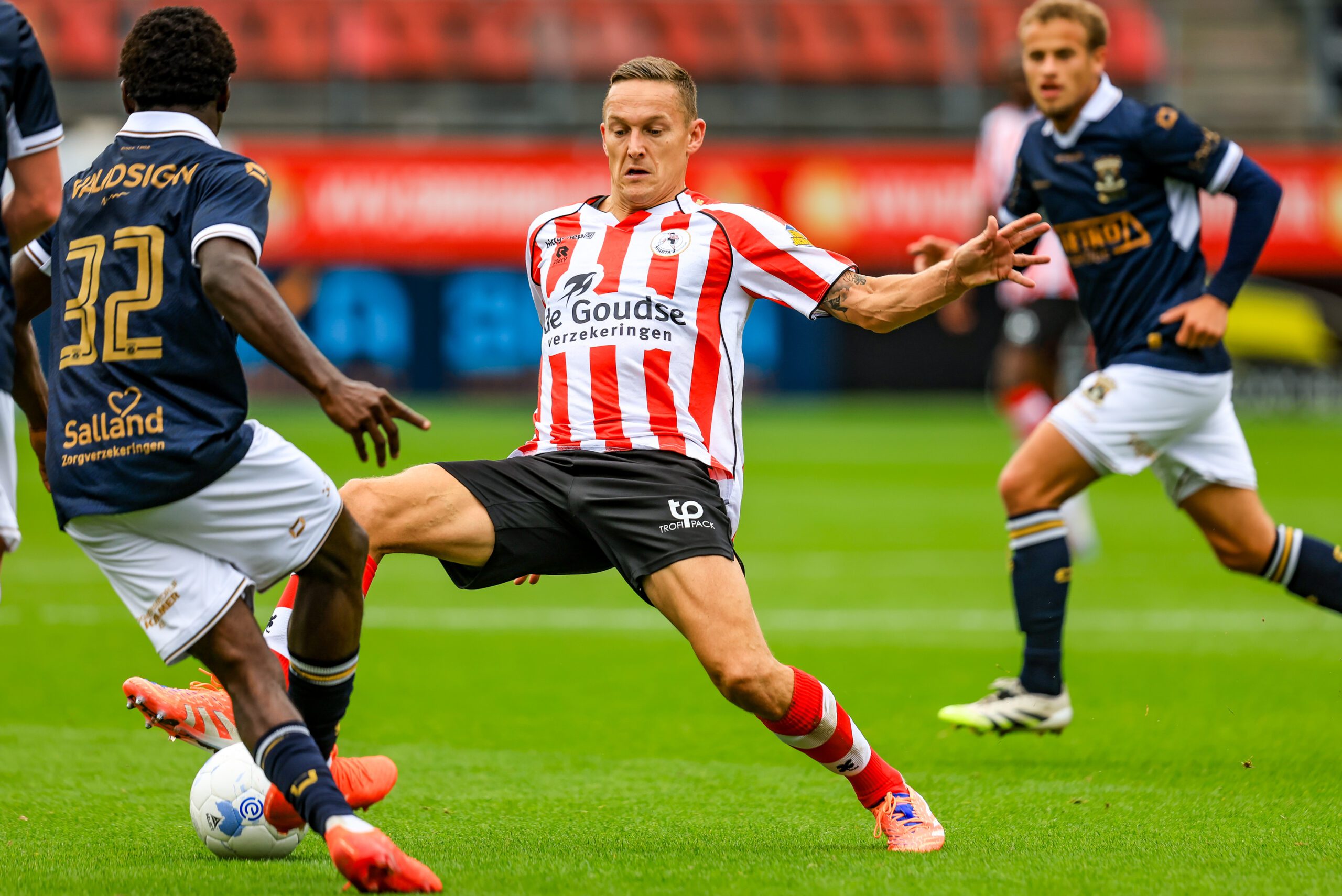 Traditiegetrouw speelt Sparta tijdens de interlandbreak een oefenwedstrijd, vanmiddag was bekerwinnaar Go Ahead Eagles te gast op Het Kasteel. Trainer Maurice Steijn koos er in deze wedstrijd voor om voornamelijk een beroep te doen op spelers die de laatste weken niet of nauwelijks hebben gespeeld. Alleen Bruno Martins Indi, Julian Baas en Ayoub Oufkir stonden afgelopen zaterdag in de basis en verschenen vanmiddag ook aan de aftrap. Daarnaast kon Lance Duijvestijn rekenen op zijn eerste basisplaats sinds hij zijn rentree heeft gemaakt. De Westlander speelde vanmiddag als linksbuiten. Go Ahead Eagles koos er, ook gezien de midweekse Europese wedstrijden, voor om geen enkele basisspeler van afgelopen weekend speelminuten te geven. Desondanks zagen we in oud-Spartanen Kenzo Goudmijn en Finn Stokkers wel twee bekende gezichten.